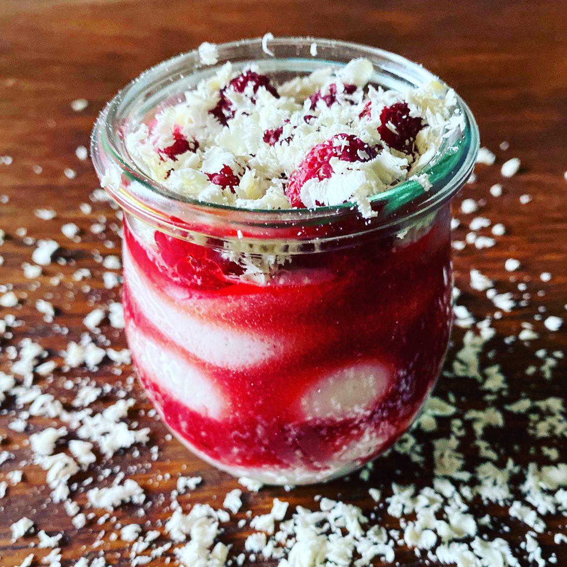 Bei diesem grauen Wetter gibt’s bei uns heute ich fruchtig frisches Himbeer-Vanille-Dessert. Desserts in kleinen Gläschen finde ich immer besonders praktisch. Es ist total einfach, super schnell gemacht und sieht super aus.